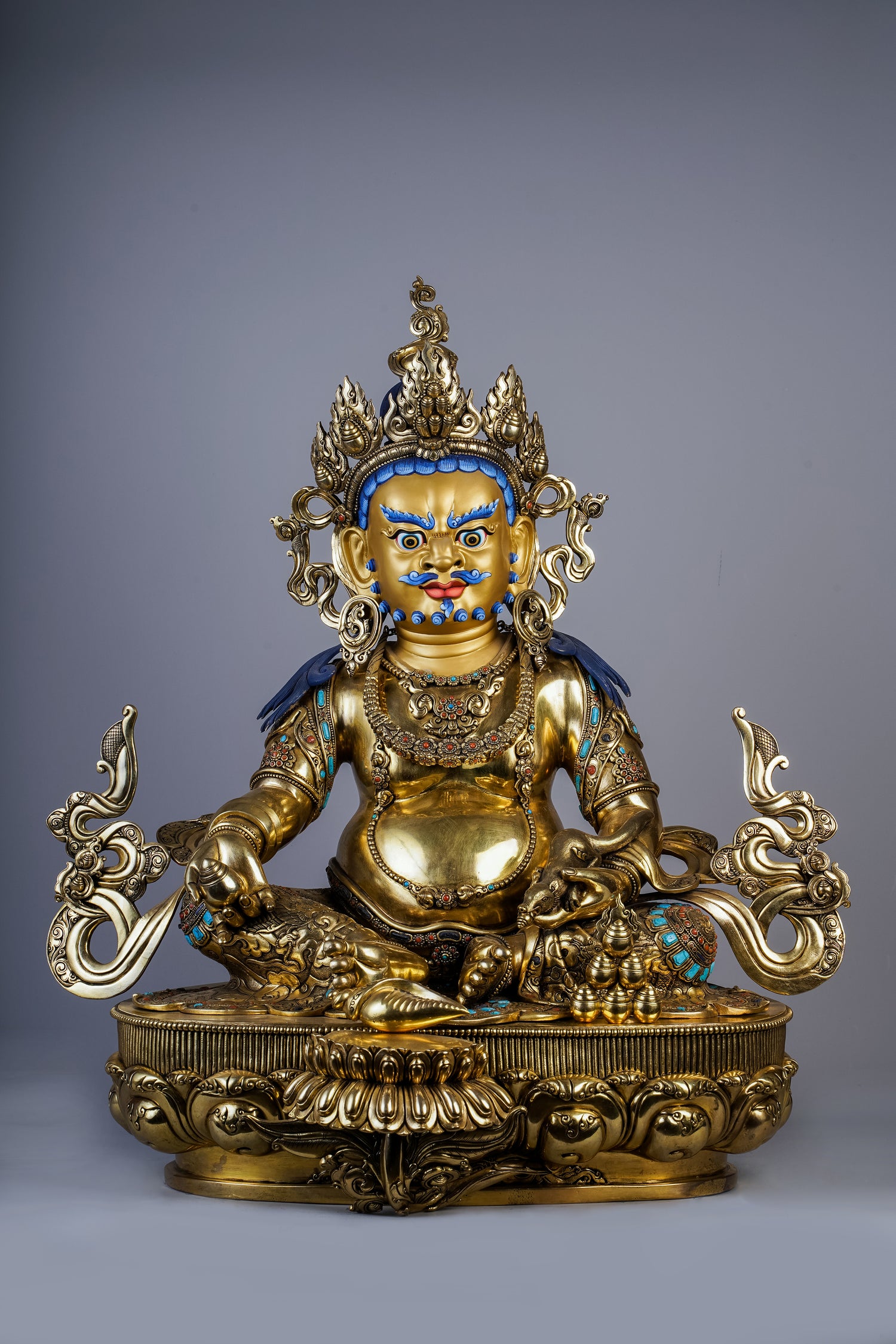 It is told in the sutras that when Sakyamuni Buddha was reciting the Maha Prajna-Paramita Sutra, a demon appeared, intent on creating confusion and disrupting the sacred transmission. At that very moment, Yellow Dzambhala emerged and stood before the Buddha, shielding him from harm. Witnessing this act of divine courage, the Buddha turned to Yellow Dzambhala and asked, “Do you wish to become a dharma protector and save the sentient beings?” With deep compassion, Dzambhala accepted the Buddha’s word, and from that day onward, he vowed to protect the Dharma.